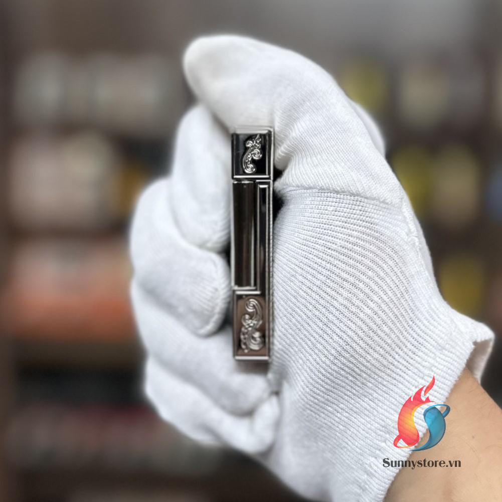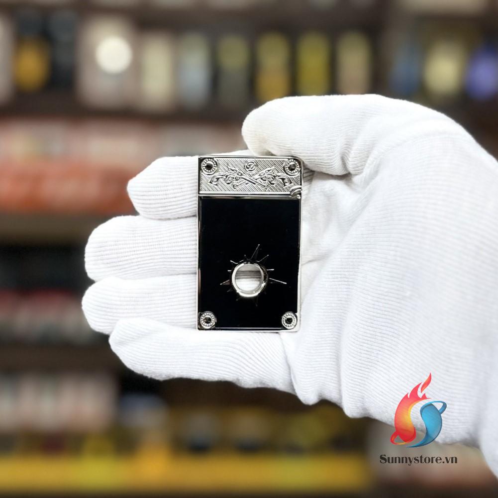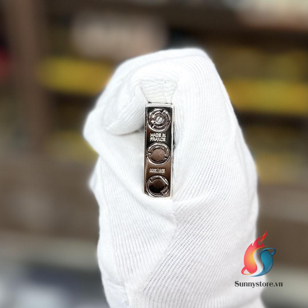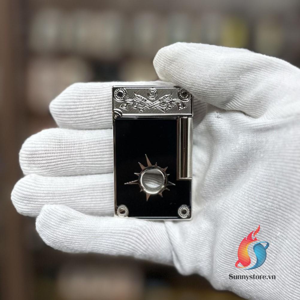 Bật lửa Dupont trong lớp hoàn thiện bằng palladium có một cặp súng lục bắt chéo, sơn mài đen mờ và xuyên qua nòng một lỗ đạn có viền bởi bụi thiên thạch. Một dây xích bằng thép không gỉ hoàn thiện chiếc bật lửa nổi bật này. Bật lửa Ligne 2 bằng palladium & sơn mài đen có dây xích. Được tô điểm bởi tác phẩm sơn mài tự nhiên màu đen như một đêm Mojave với một mảng màu vàng.