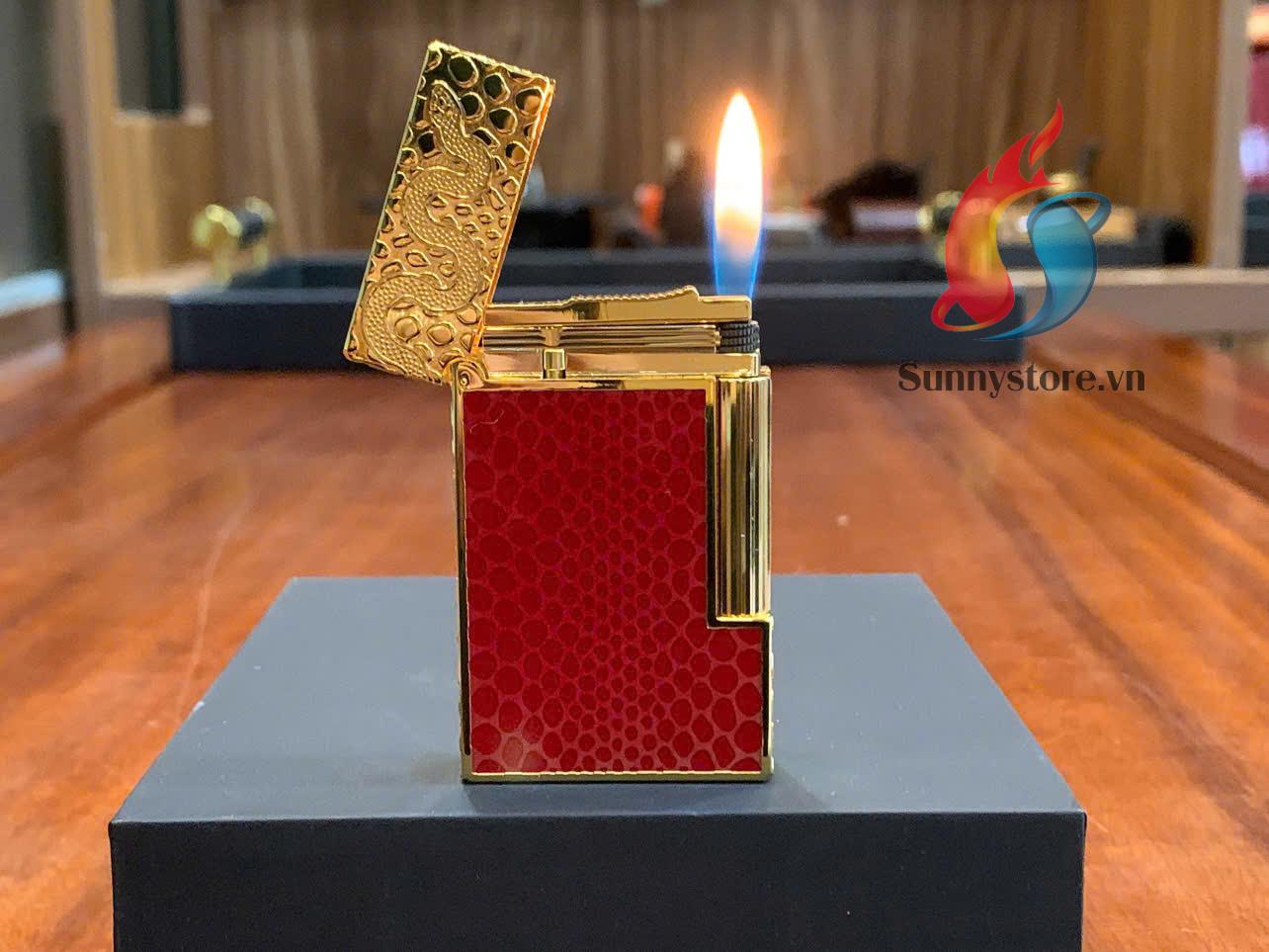 • Thiết kế: Hình rắn uốn lượn khắc nổi trên nắp bật lửa, từng chi tiết đều được chăm chút bởi nghệ nhân S.T. Dupont.