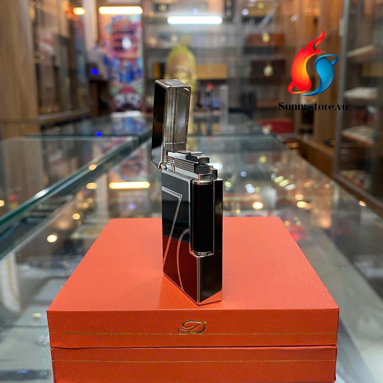 Mặt đen huyền bí: Thân bật lửa được sơn mài đen bóng, tạo nên sự sang trọng và làm nổi bật các chi tiết đính đá.
