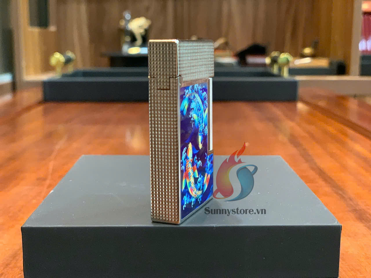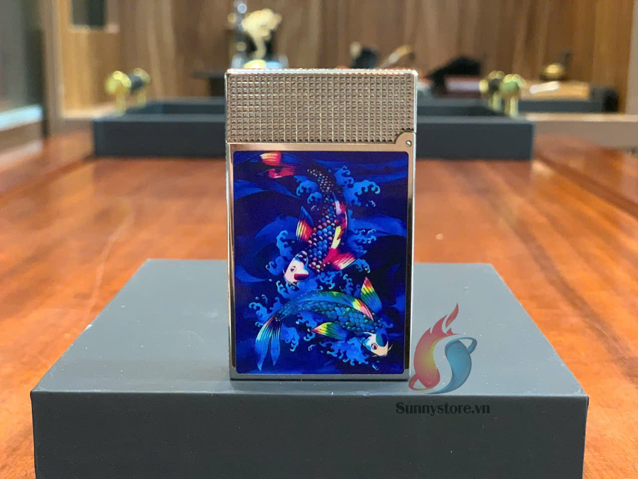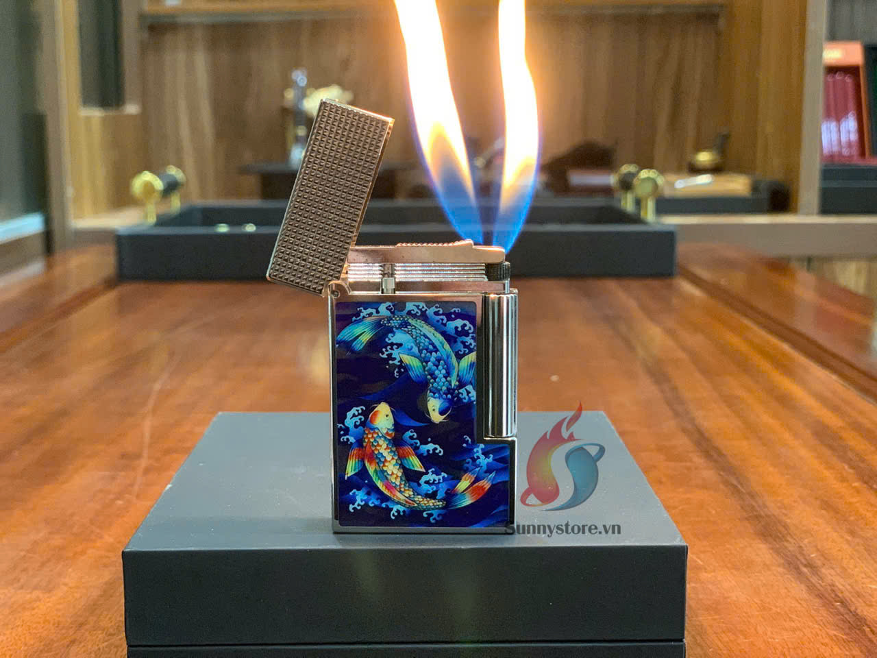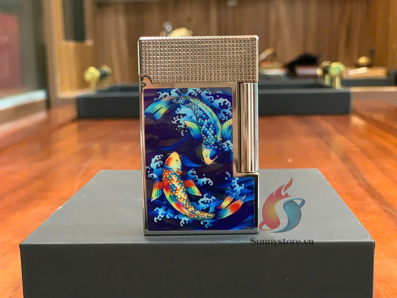 Bật lửa S.T. Dupont Line 2 Cá Chép Phong Thủy là tuyệt tác thủ công tinh xảo , dành riêng cho những người yêu thích văn hóa phương Đông và đề cao giá trị phong thủy. Hình ảnh song ngư chép hóa rồng được khắc họa sinh động bằng sơn mài cao cấp trên nền xanh biển sâu, tượng trưng cho sự kiên trì, thăng tiến và may mắn.