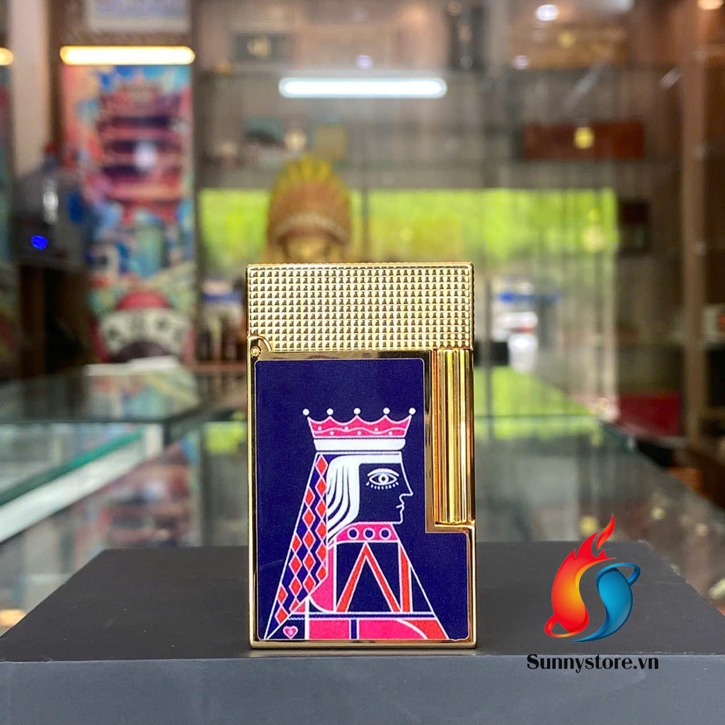 S.T.Dupont Queen of Hearts mang phong cách thiết kế độc đáo với hình ảnh nữ hoàng trong bộ bài Tây (Queen of Hearts), biểu tượng của quyền lực, sắc đẹp và trí tuệ. Nền men xanh đậm phối cùng màu đỏ – trắng nổi bật, tạo nên vẻ sang trọng và thu hút. Phần thân bật lửa được chế tác thủ công tinh xảo với lớp phủ mạ vàng , đem lại độ sáng bóng quý phái và khả năng chống oxy hóa tuyệt vời theo thời gian.
