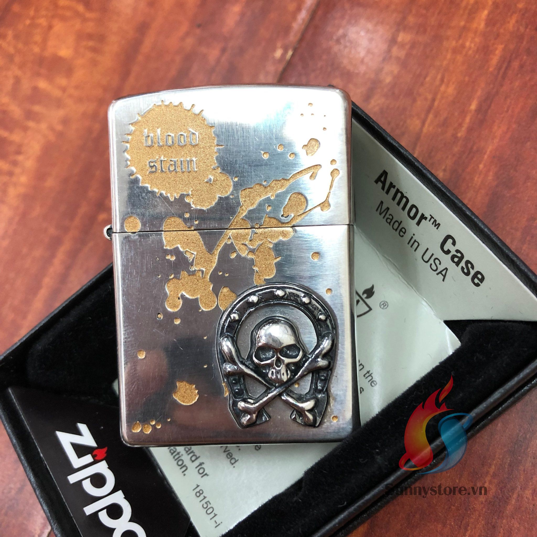 Bật lửa Zippo Armor lacke sliver blood stam