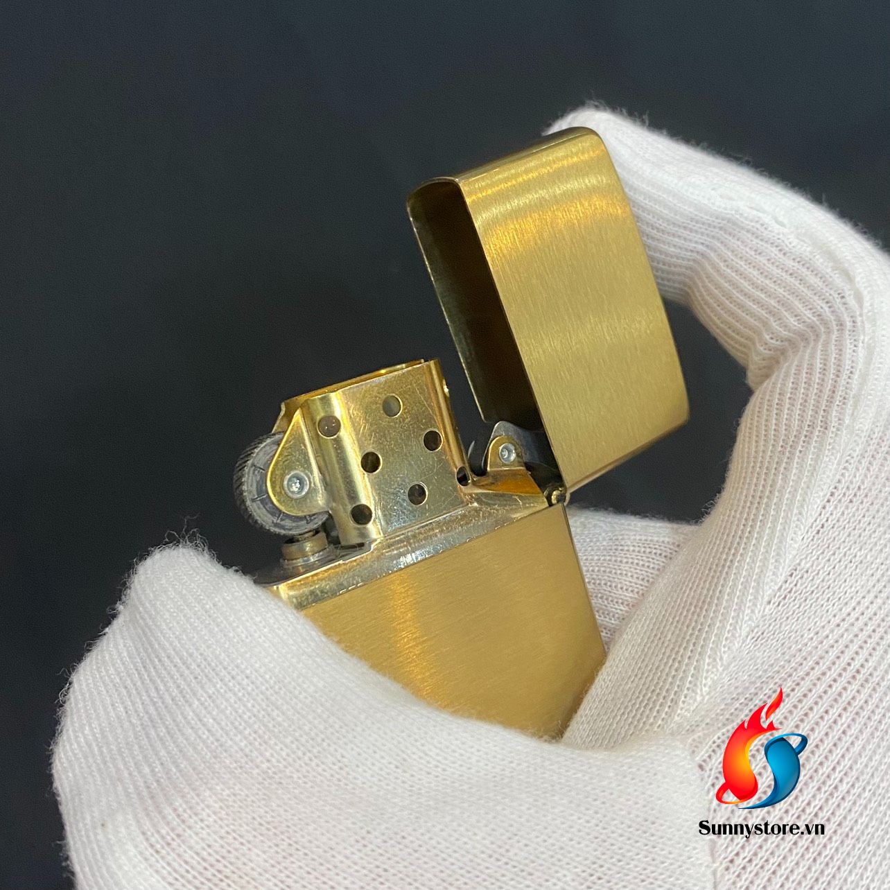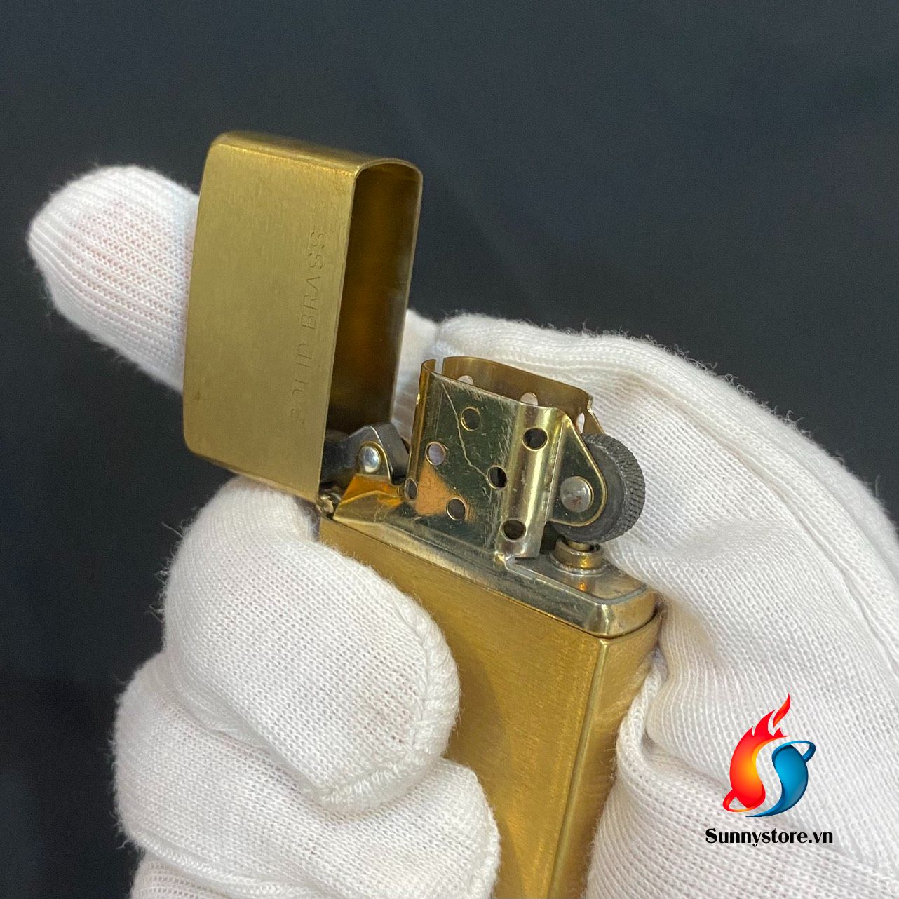 Có đặc điểm là được đánh bóng và chải xước ngang. Màu sắc truyền thống làm cho lớp hoàn thiện này trở thành một trong những lớp hoàn thiện linh hoạt nhất và khắc chữ SOLID BRASS lên nắp mặt trước của Zippo. Âm thanh bật nắp ấm và vang đặc trưng của chất liệu đồng thau.