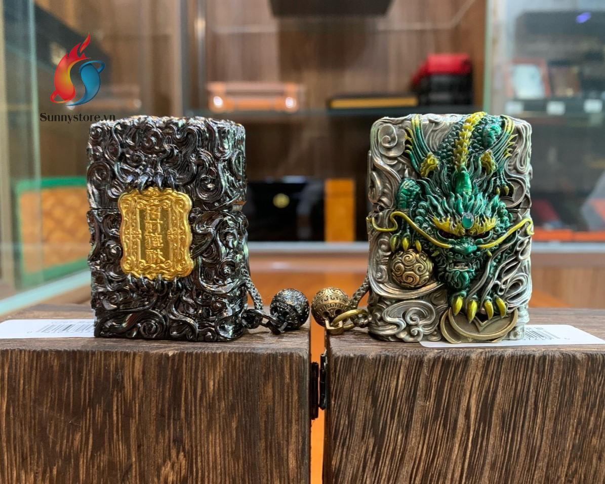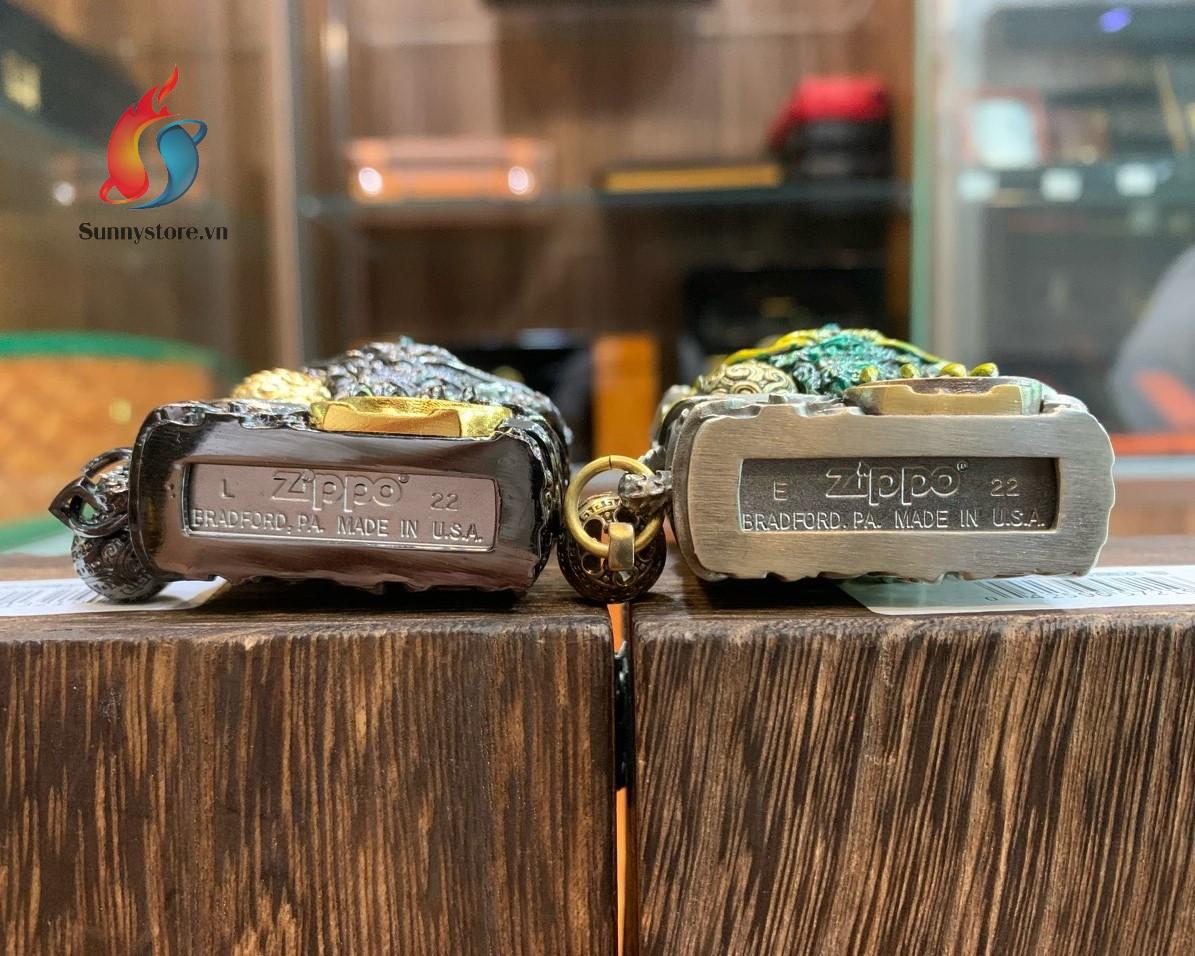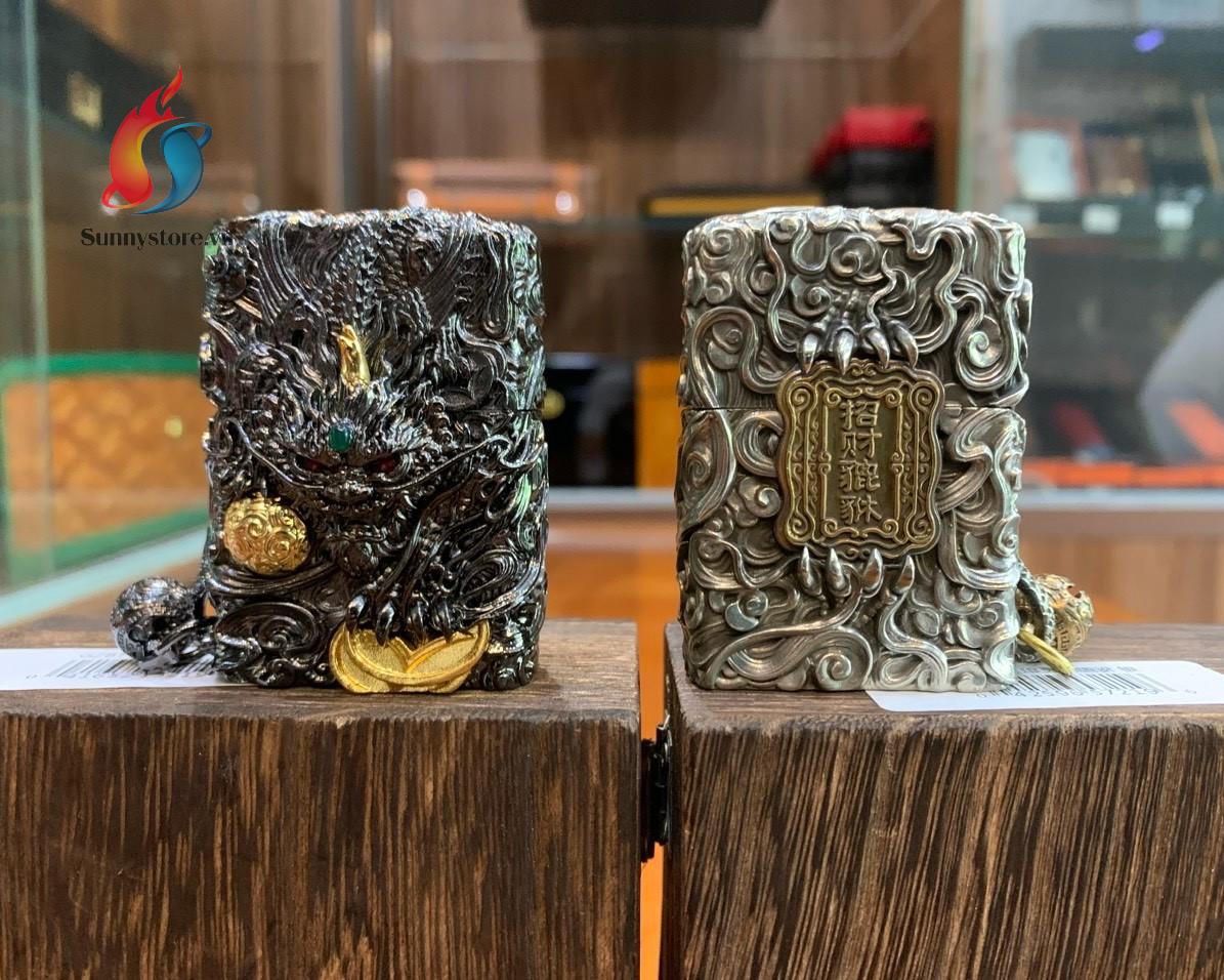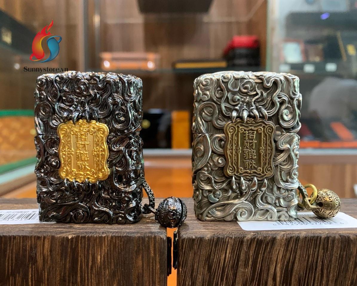 - Bật lửa zippo hình tỳ hưu cầm tiền vàng