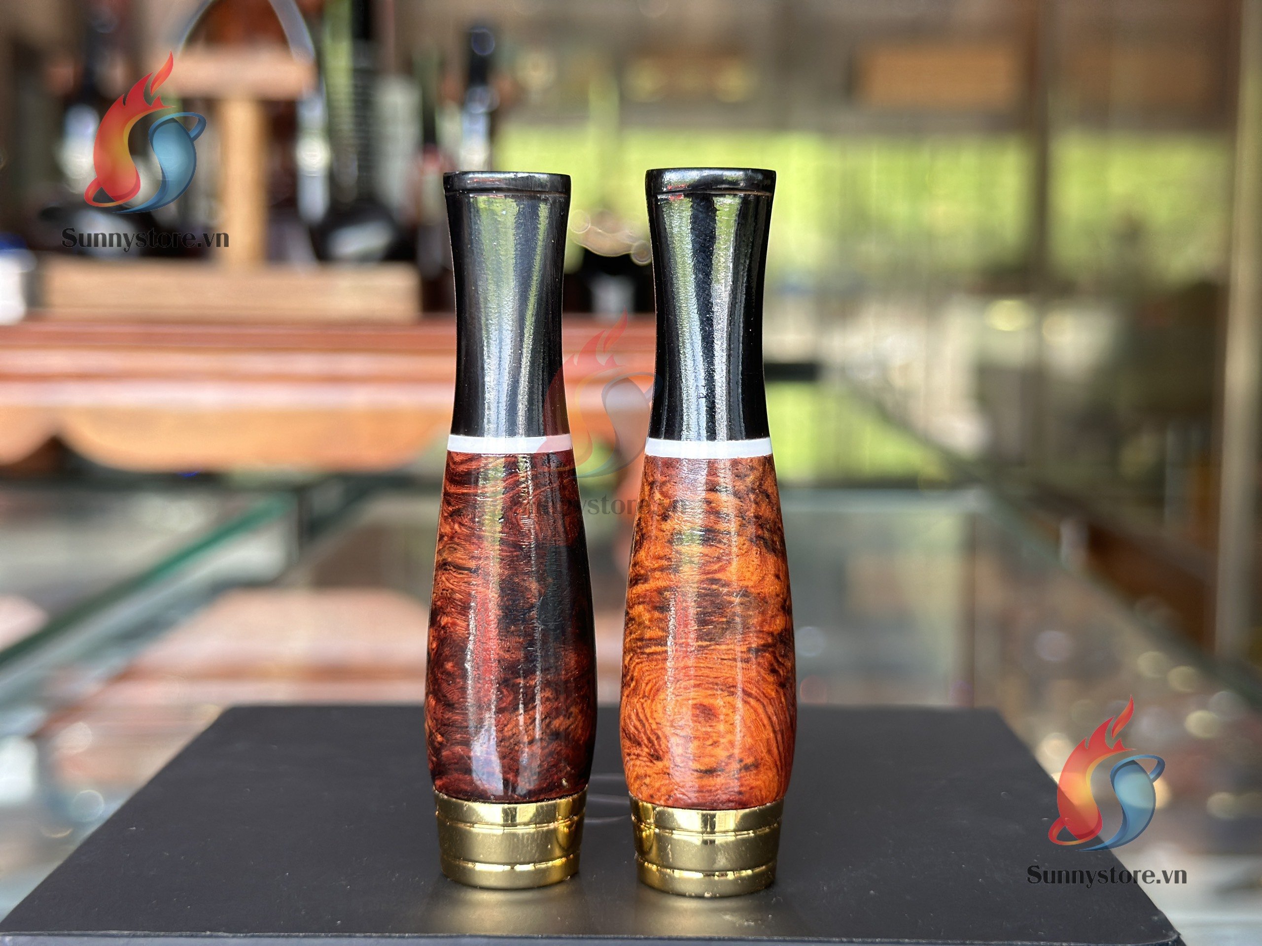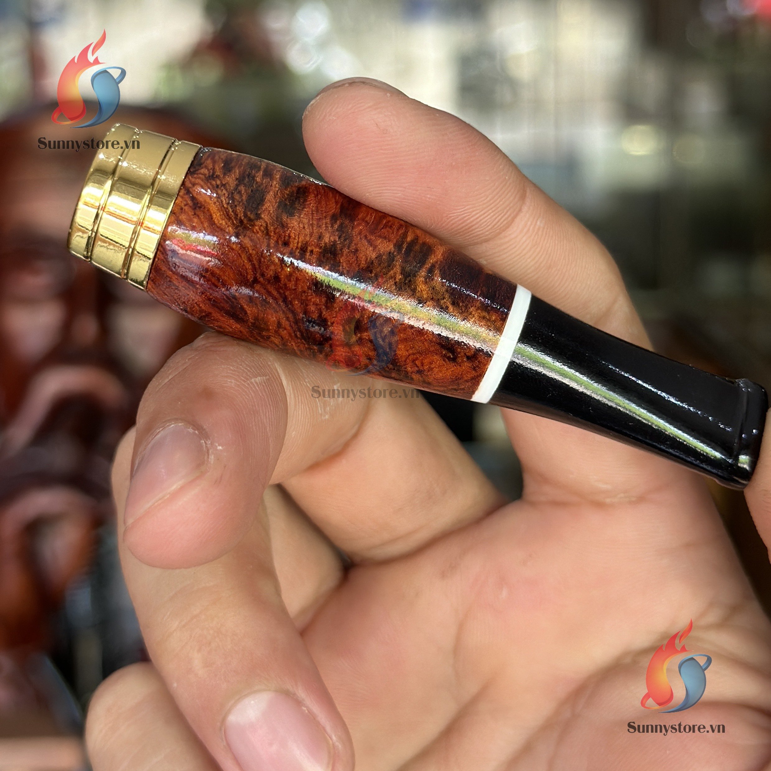 Giới thiệu sản phẩm: Bắt tóp gỗ cẩm cán sừng bát mạ vàng ring 33 Vừa cho 6 Wid.e Short