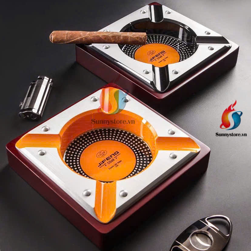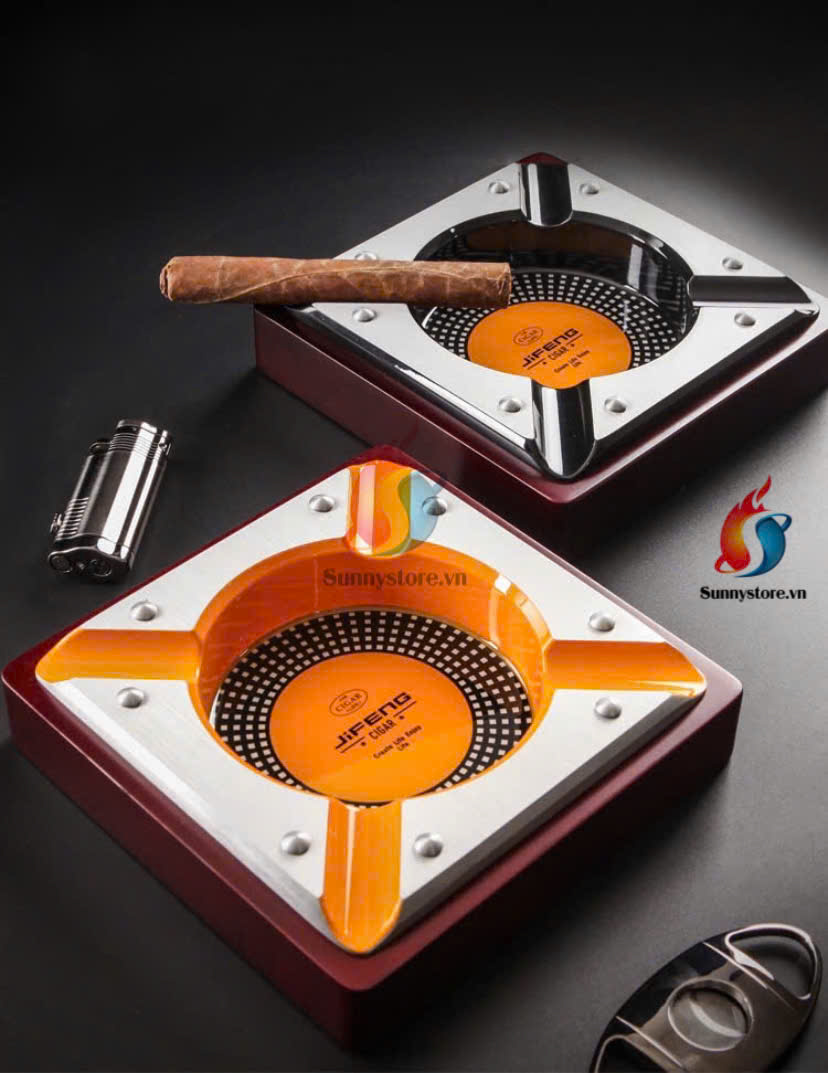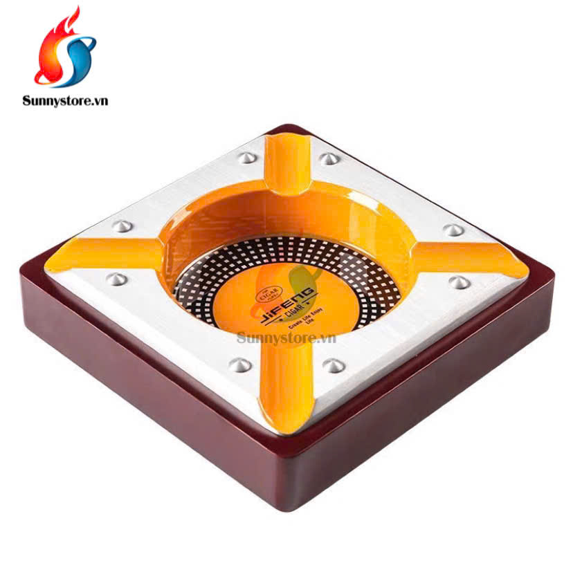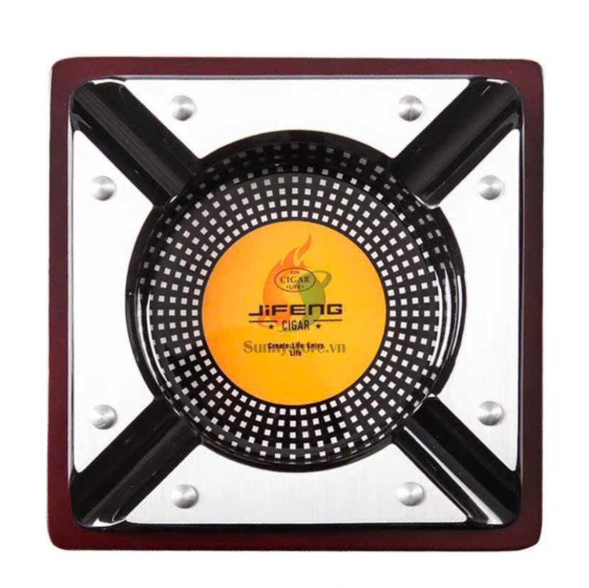 Gạt tàn 4 điếu gỗ mặt kim loại Jifeng