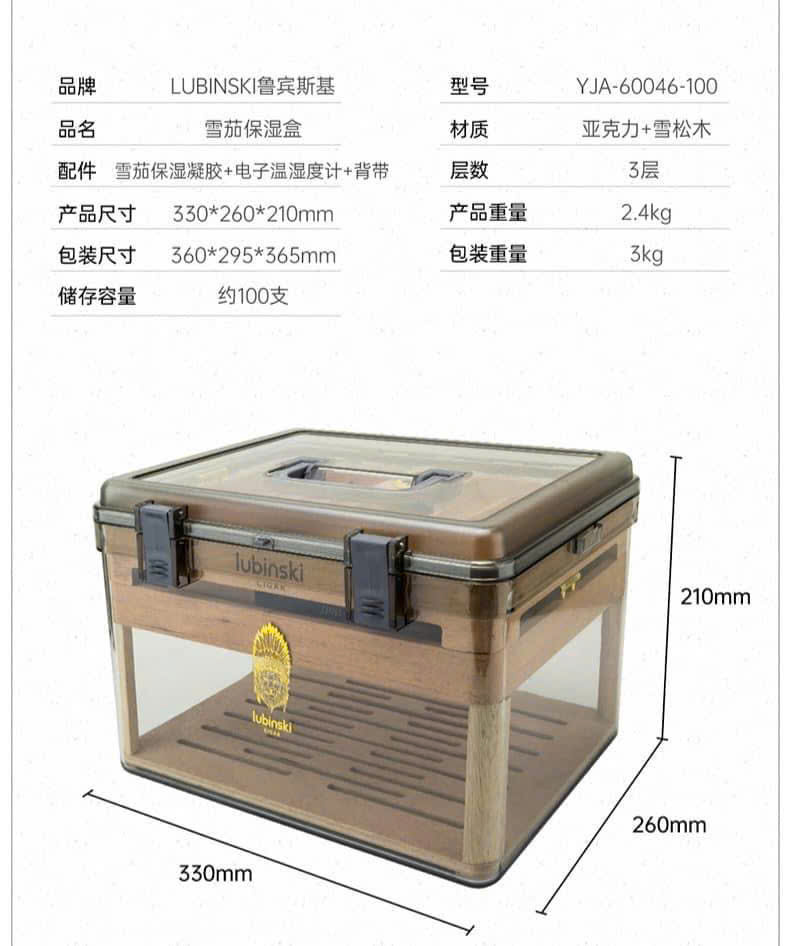 - Dung tích chứa được 100 điếu cigar, sản phẩm có đi kèm với đồng hồ đo nhiệt độ và độ ẩm