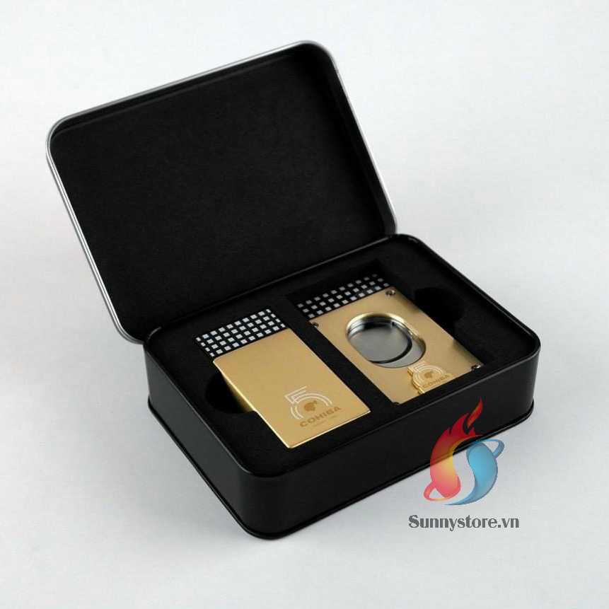 Bộ sản phẩm bao gồm: 1 Bật lửa 1 tia, 1 Máy cắt, 1 Gác điếu