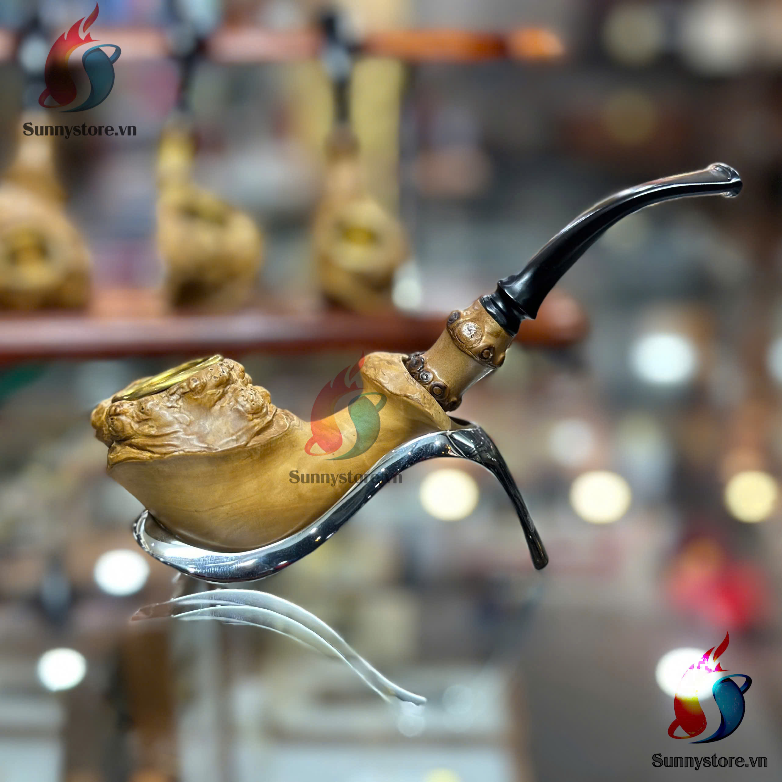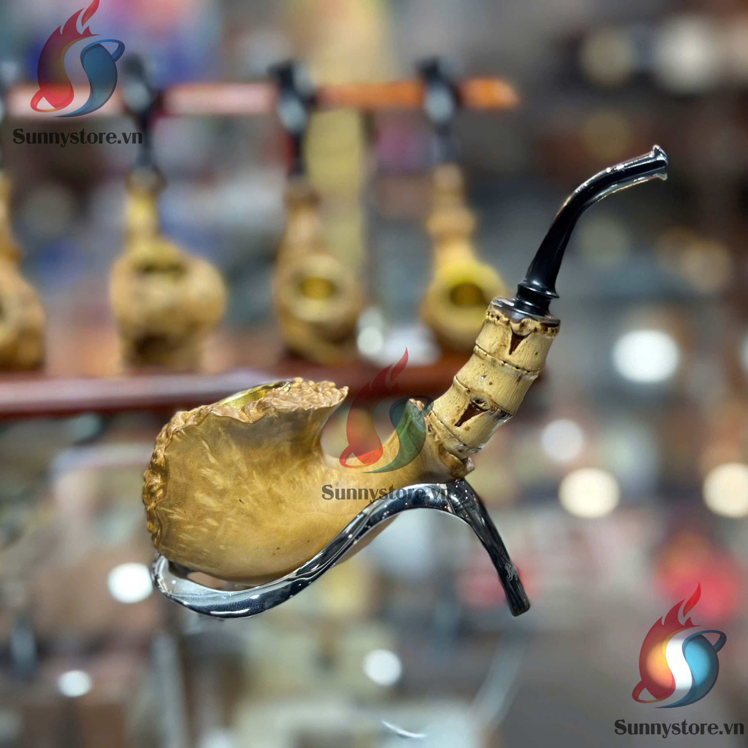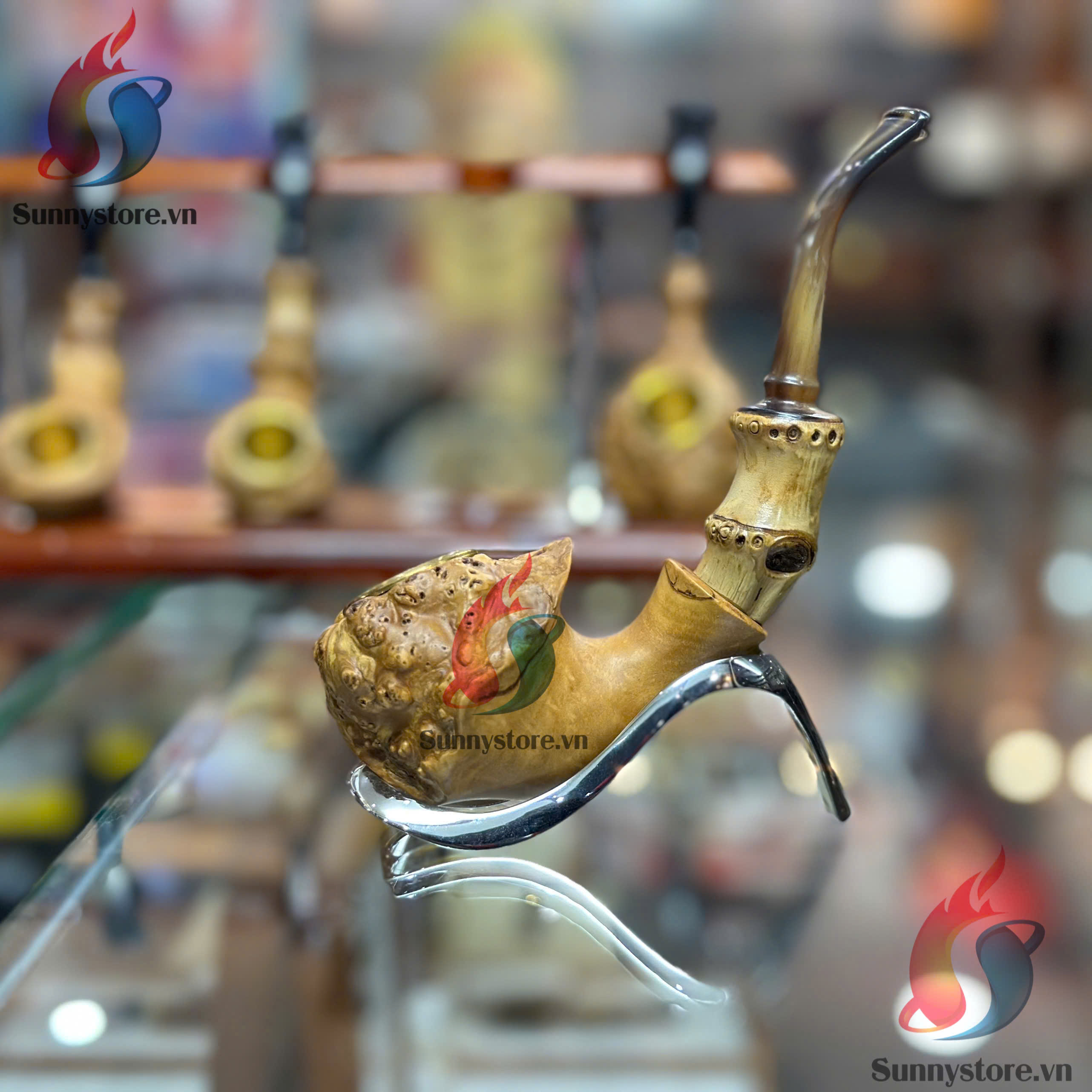 Tên sản phẩm: Tẩu bắt tóp Gỗ óc chó nối trúc cán sừng trâu free size 42-58