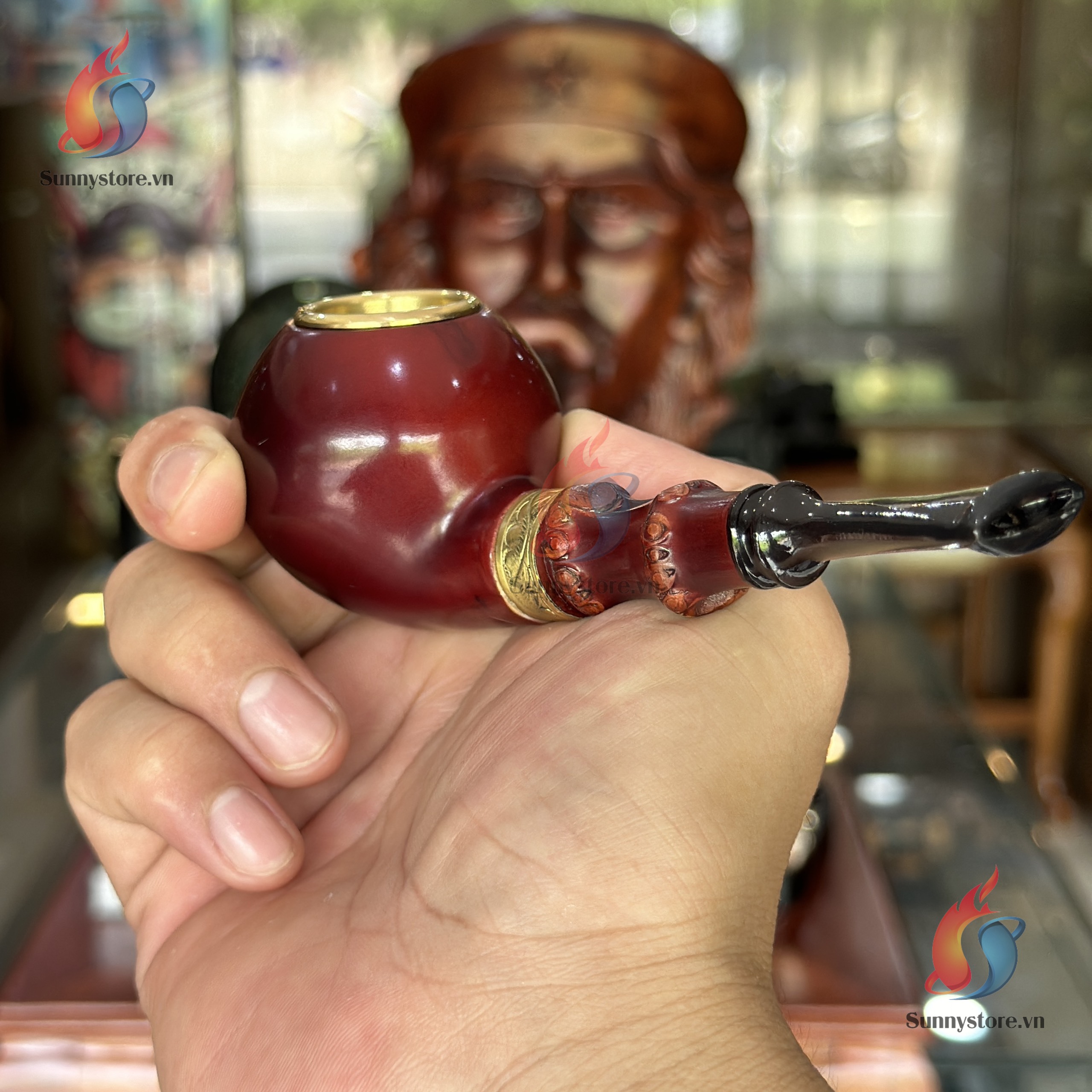 Tên sản phẩm: Tẩu bắt tóp Gỗ thạch nam nối trúc cán sừng trâu