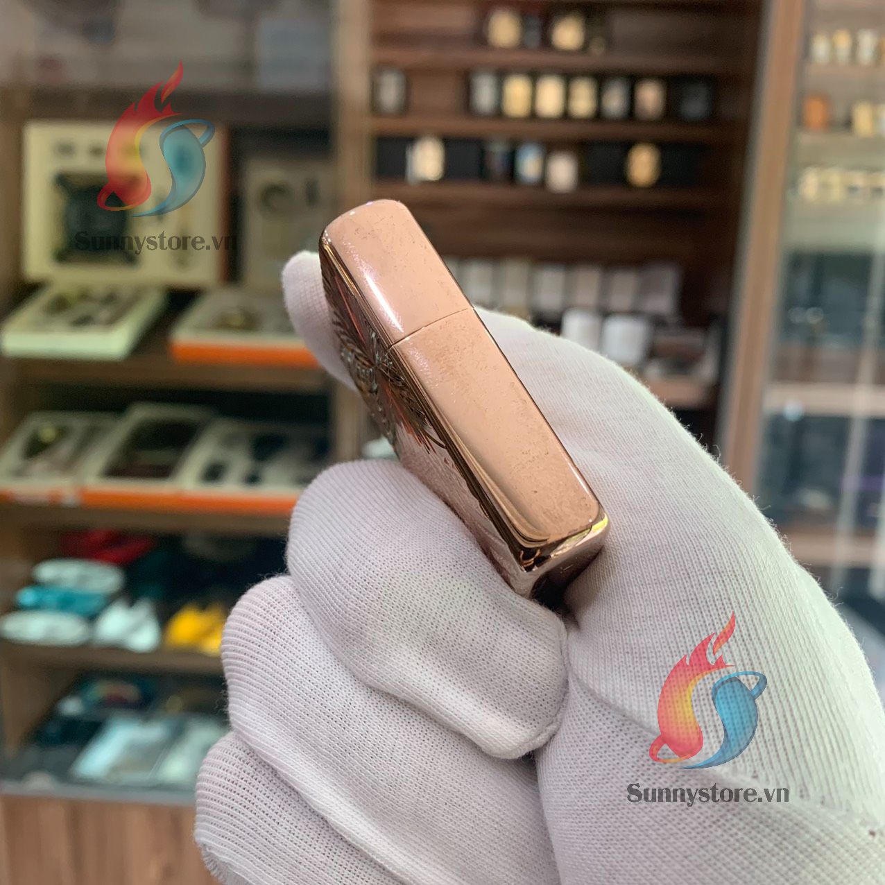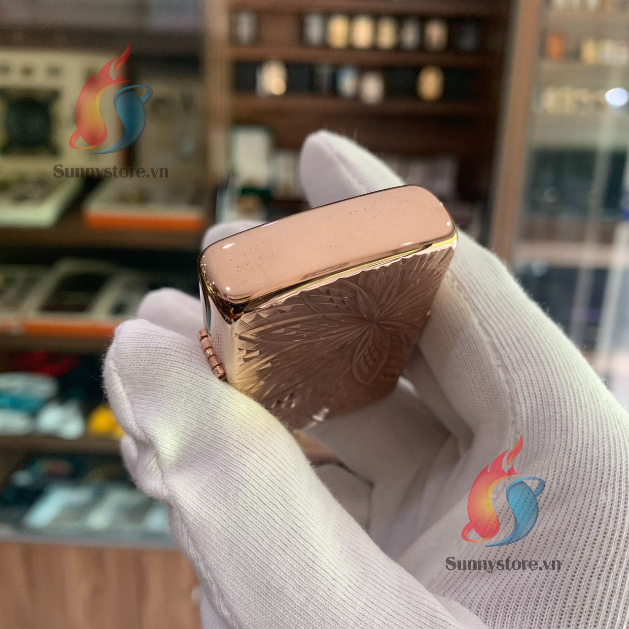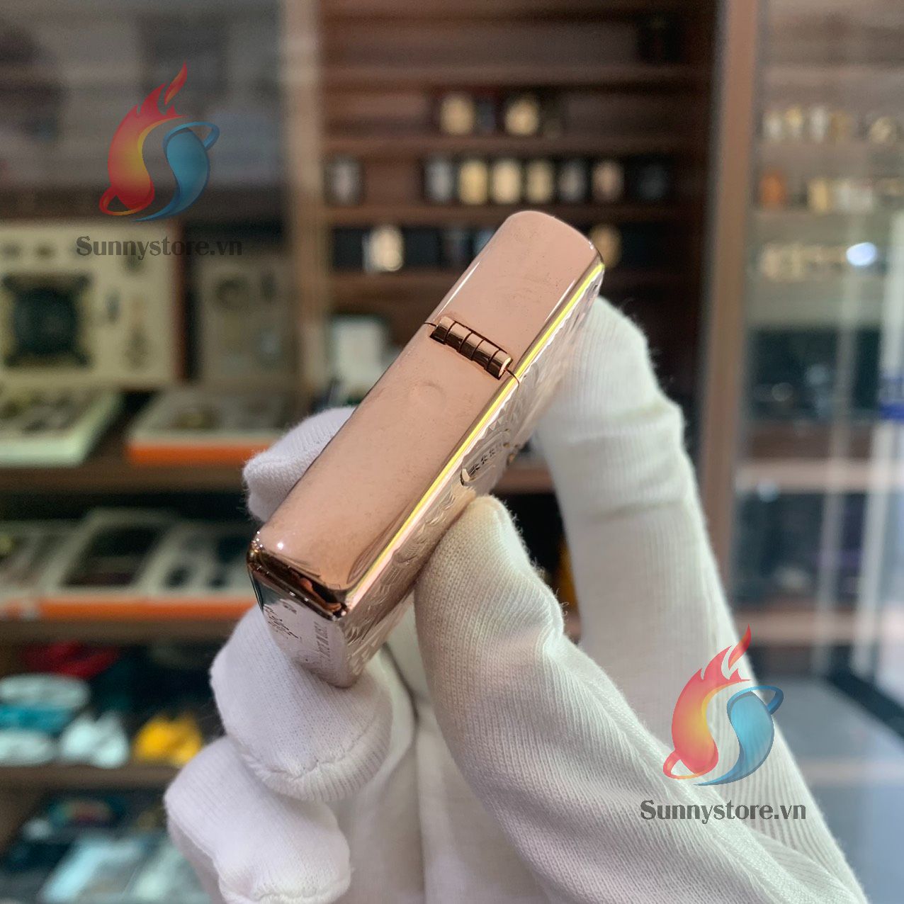 Zippo armor mạ vàng Hồng khắc hoa văn họa tiết 2 mặt