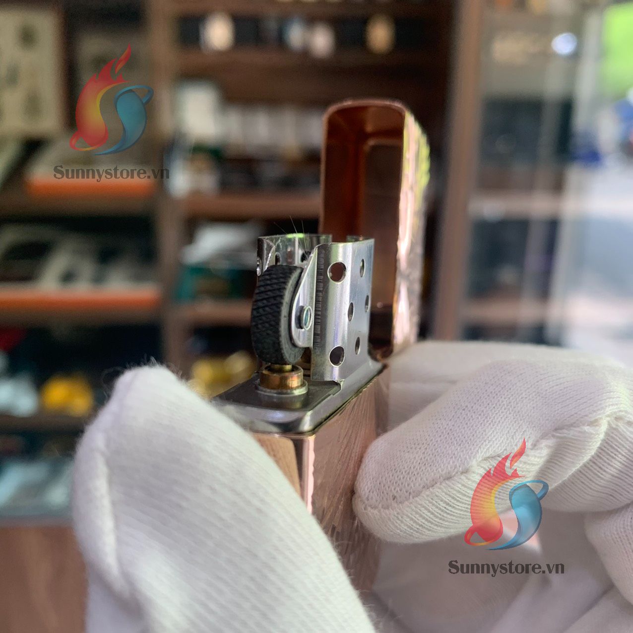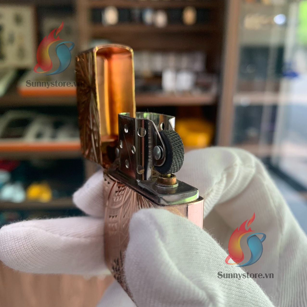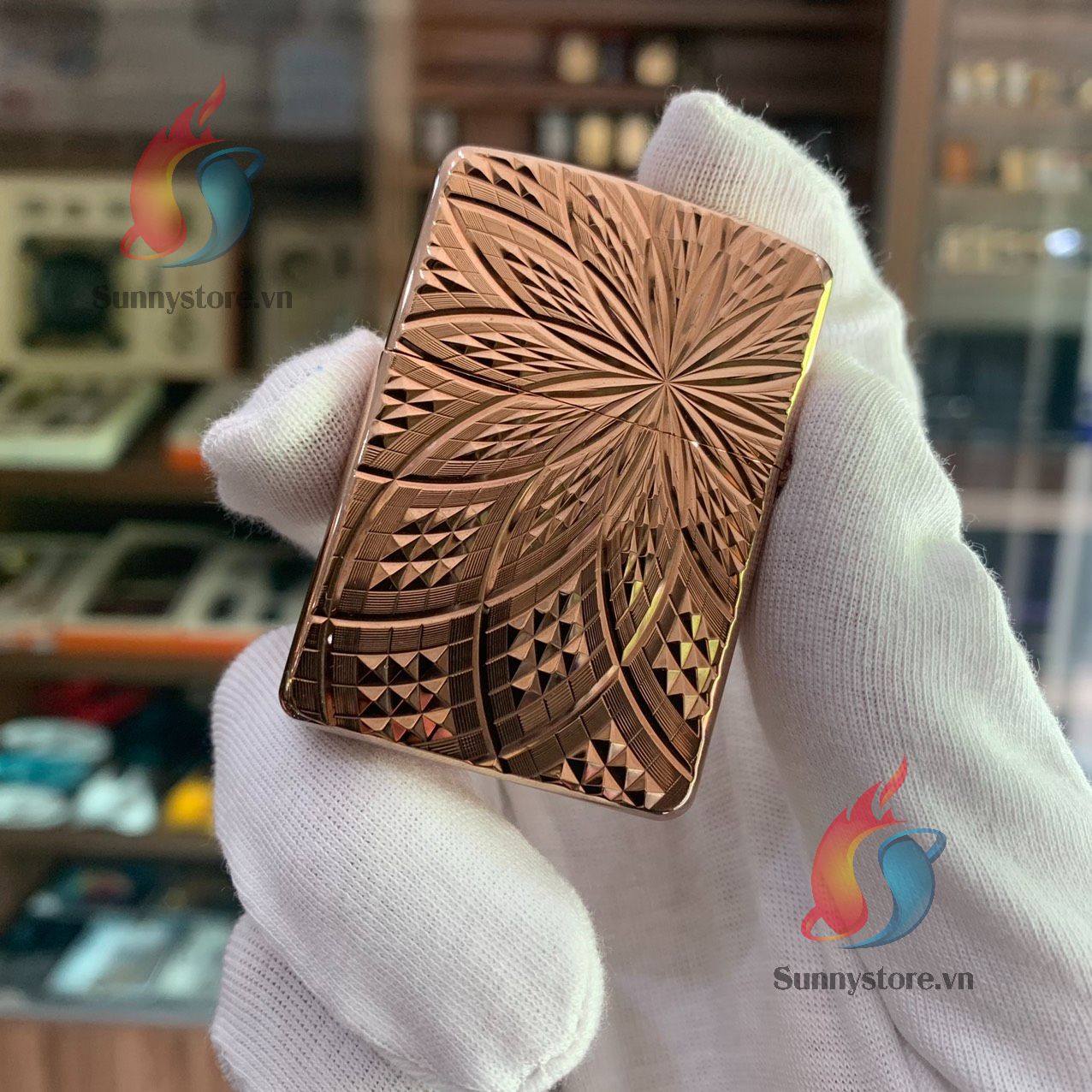 Zippo armor mạ vàng Hồng khắc hoa văn họa tiết 2 mặt