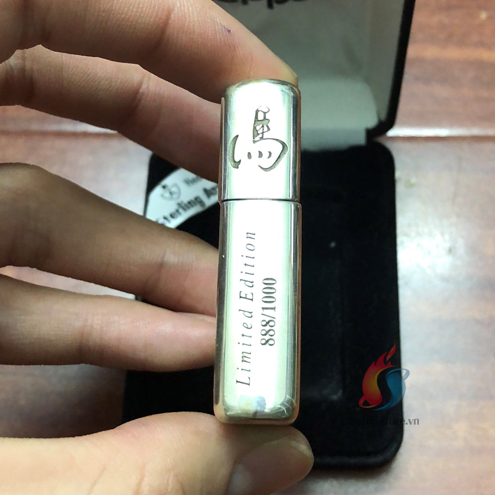 Zippo bạc khối bản armor khắc ngựa 3 mặt
