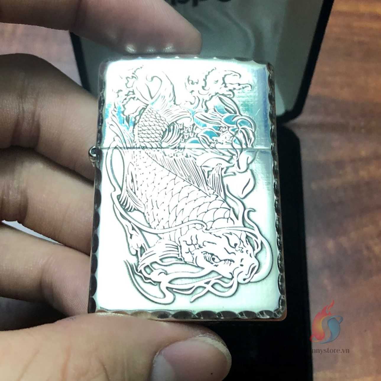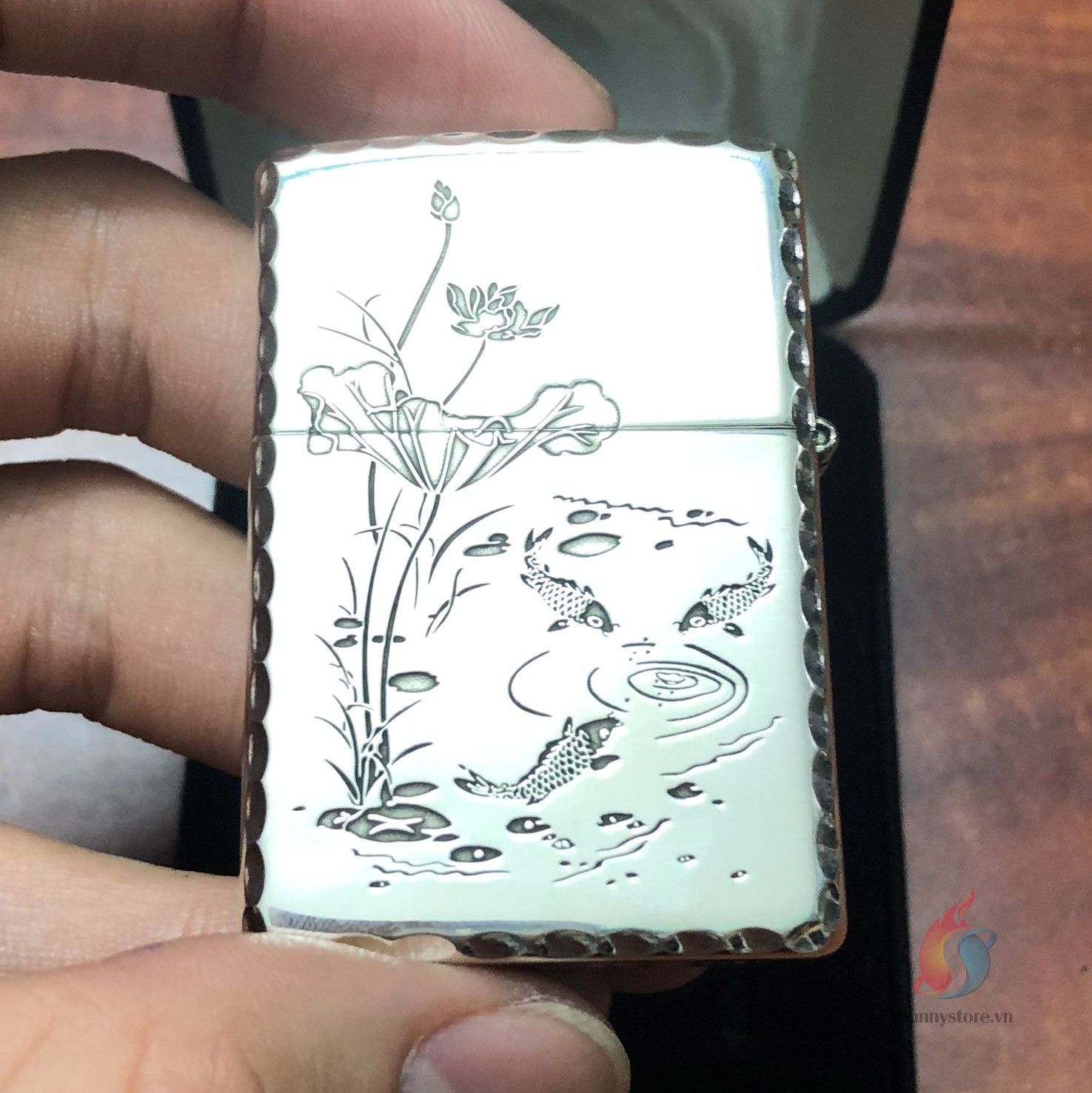 Vỏ chiếc zZippo Bạc khối Cá chép Ao Sen được đúc bằng bạc nguyên khối nên không bao giờ bay màu hay rỉ sét theo thời gian. Những chiếc Zippo bằng bạc như thế này là rất bền, có thể dùng từ 3-7 năm mà không bị hỏng hóc. Bên cạnh đó vỏ của chiếc Zippo được khắc bằng công nghệ khắc ăn mòn axit nên không bao giờ mòn hình.