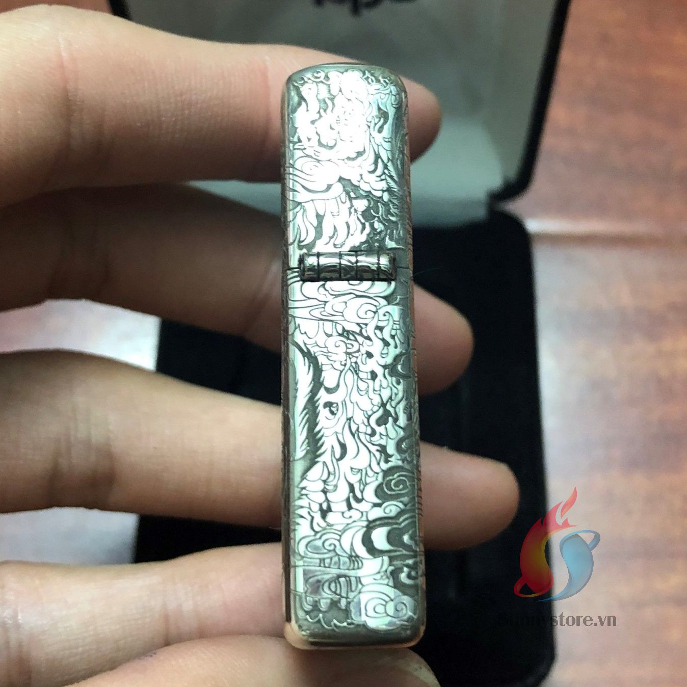 Đây là thiết kế hình phượng hoàng hồi sinh trên lửa cực đẹp, quyến rũ. Bật lửa được dập nổi nguyên bản, mang ý nghĩa cực kỳ sâu sắc về sự hồi sinh. Đây là phục hồi thịnh hưng của cả 1 quảng đường phía trước, thể hiện khí chất của phượng hoàng lửa.