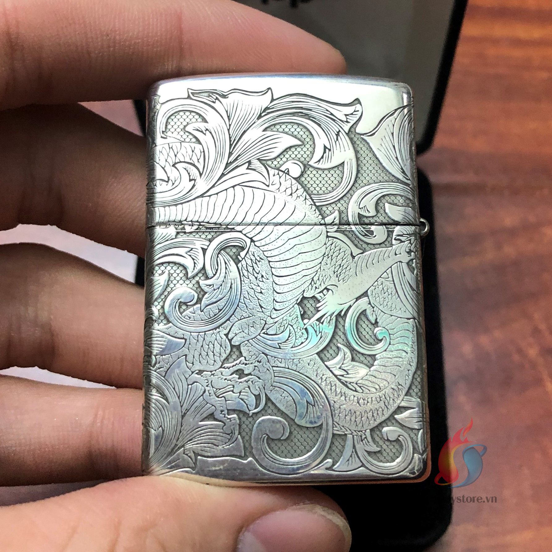 Zippo Bạc Khối Rồng Thiêng Khắc 4 Mặt