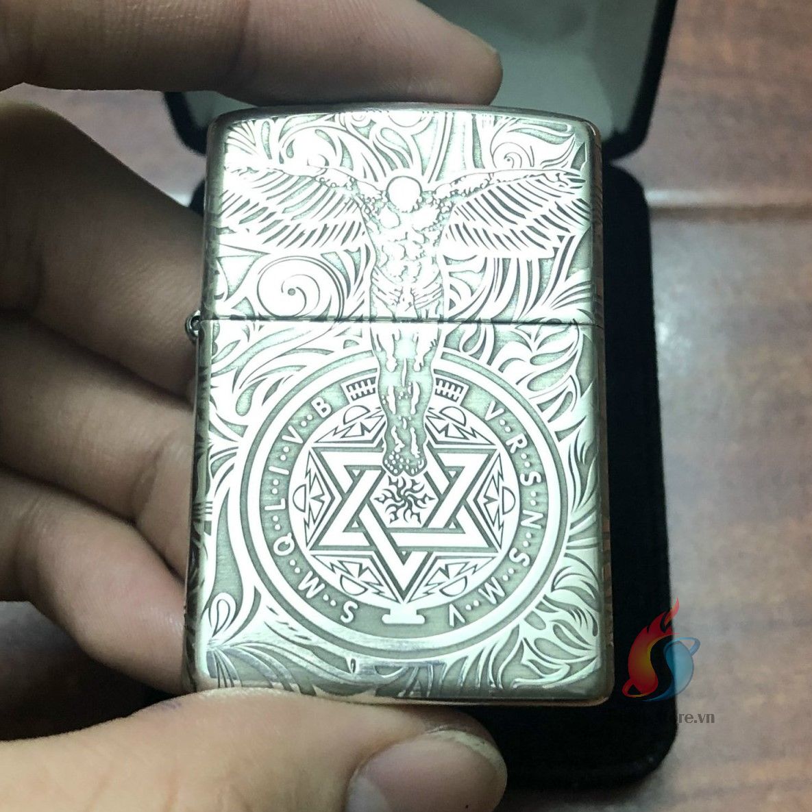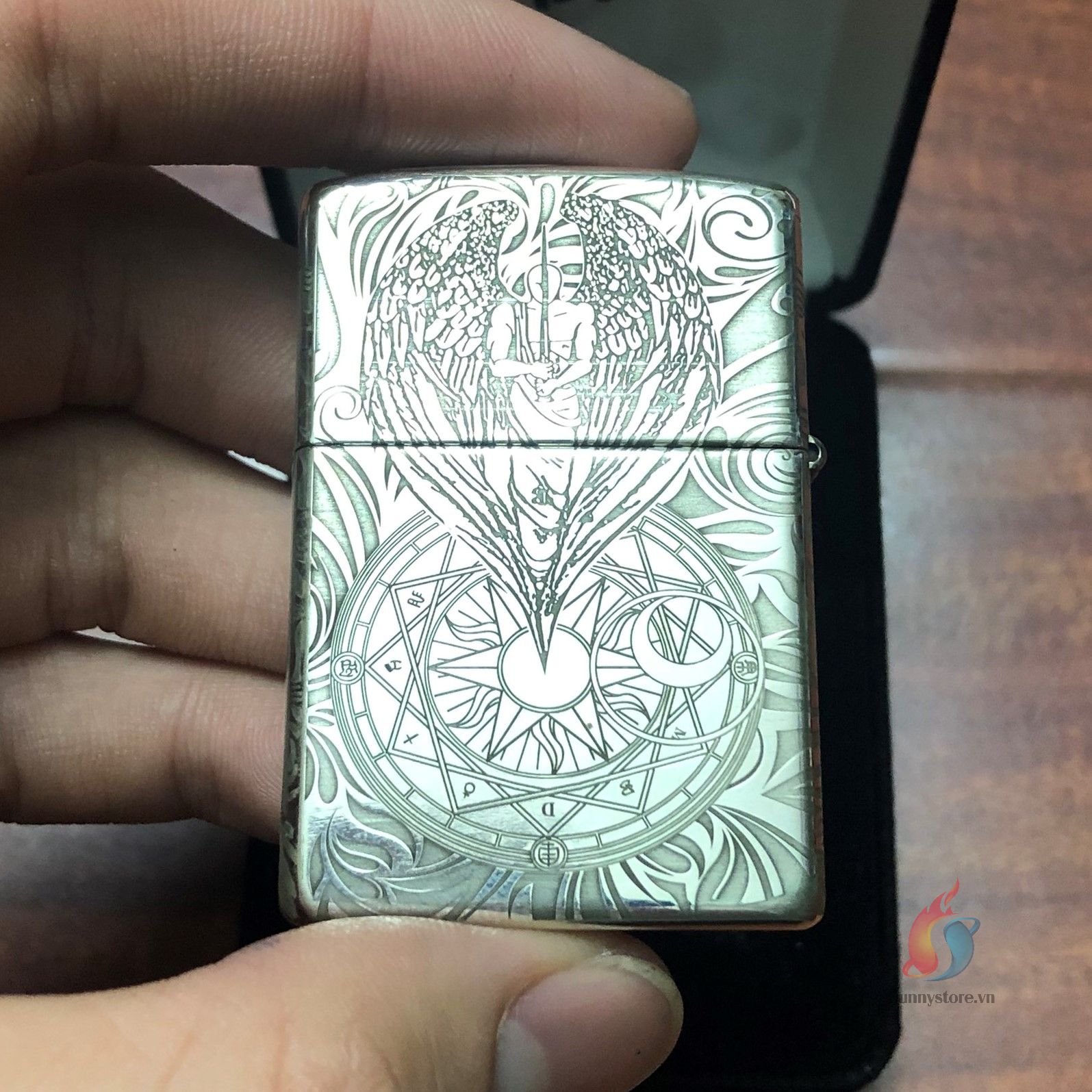 Zippo Bạc Khối Thiên Thần Hộ Mệnh Khắc 4 mặt