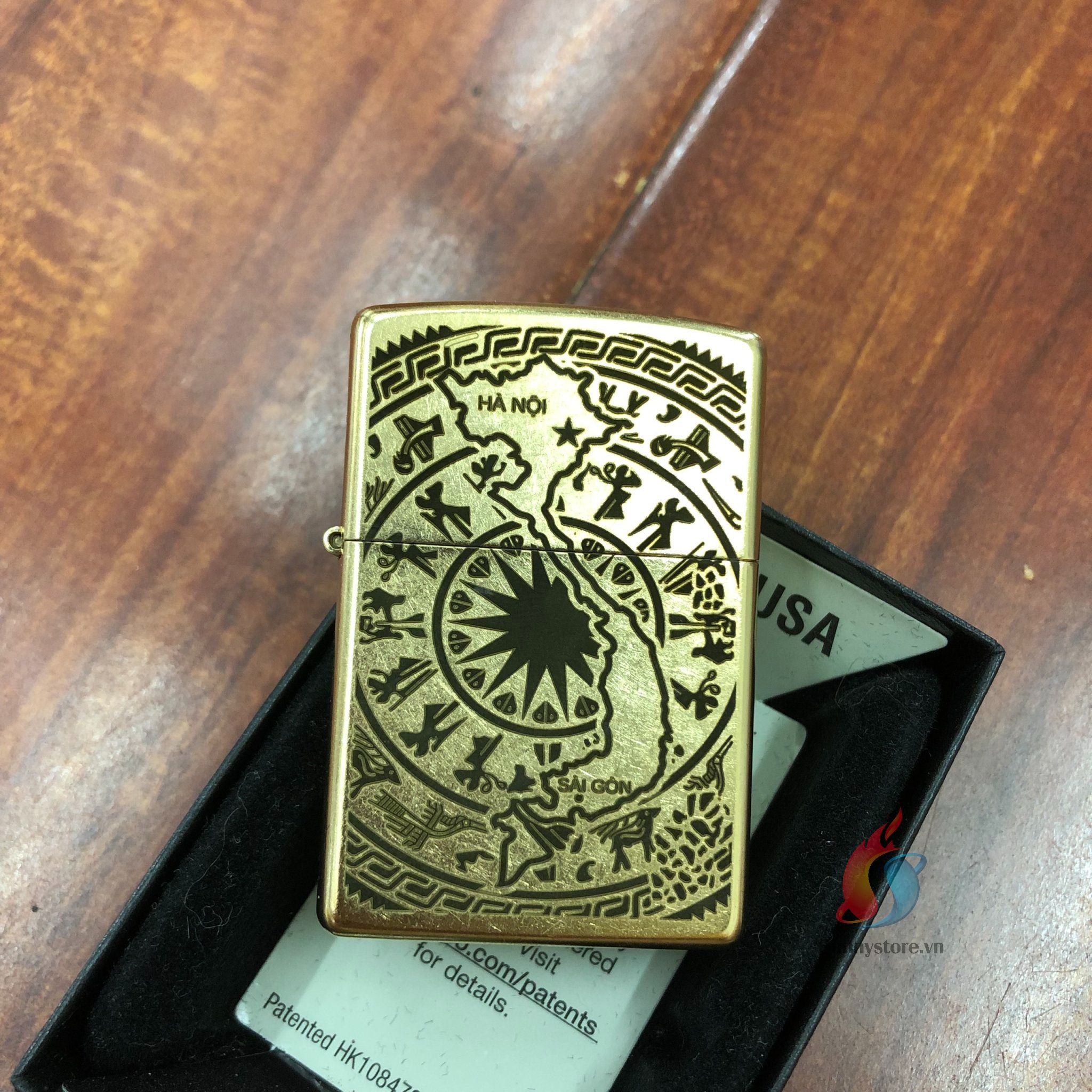Zippo Khắc Bản Đồ Việt Nam Và Trống Đồng