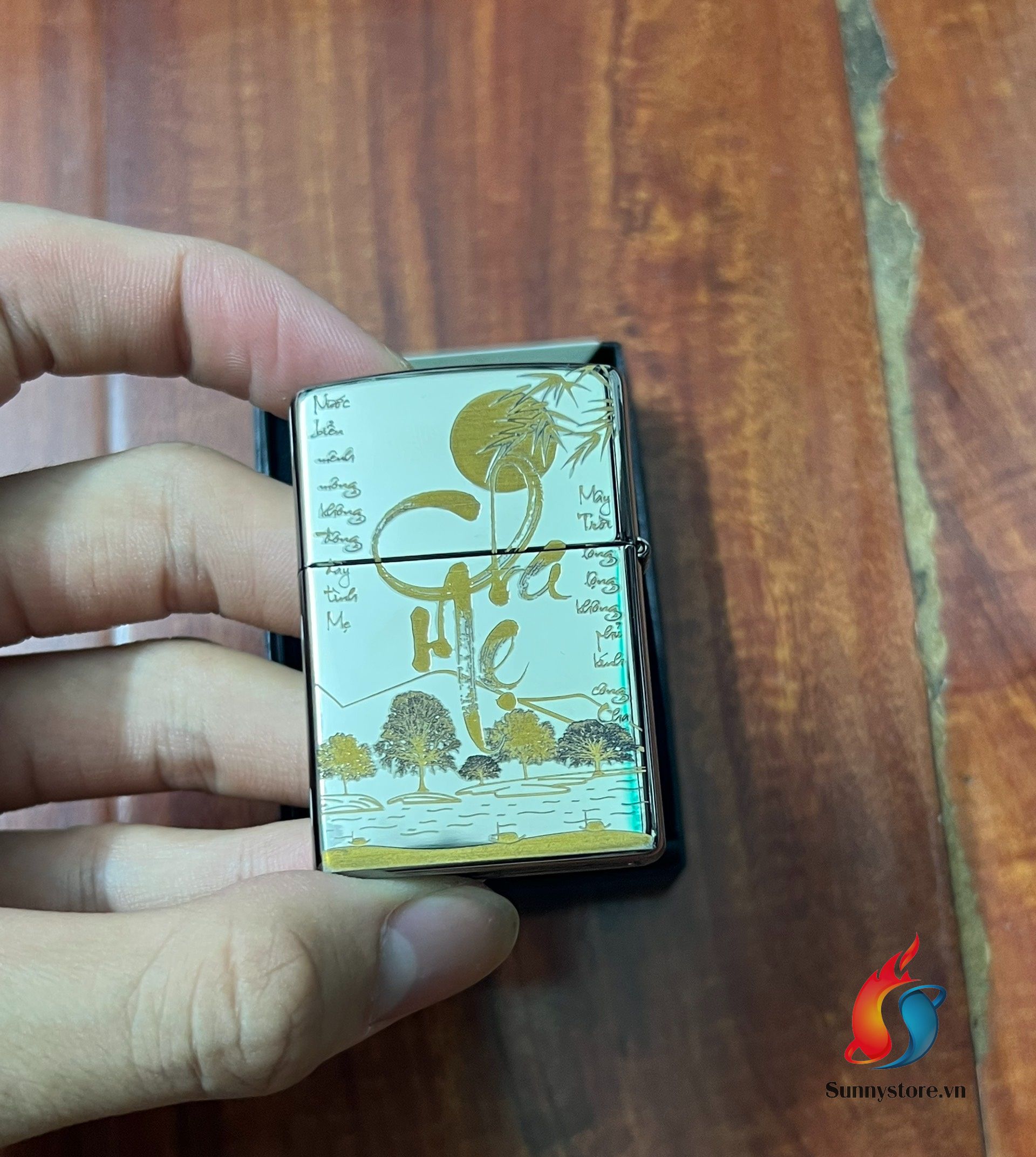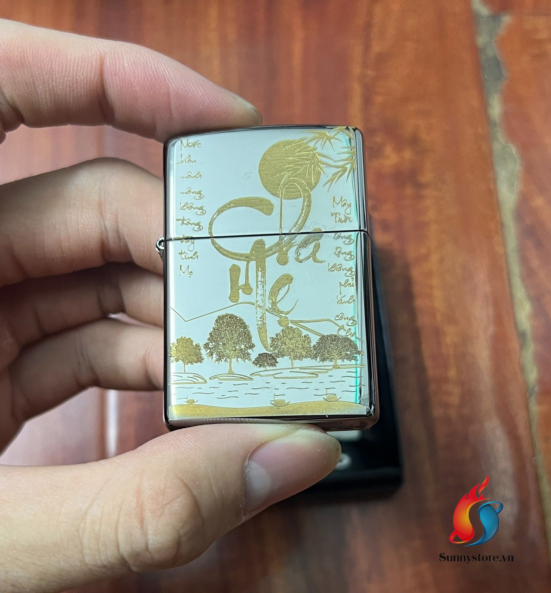 Zippo Khắc CNC Đen Bóng Chữ Cha Mẹ SG35