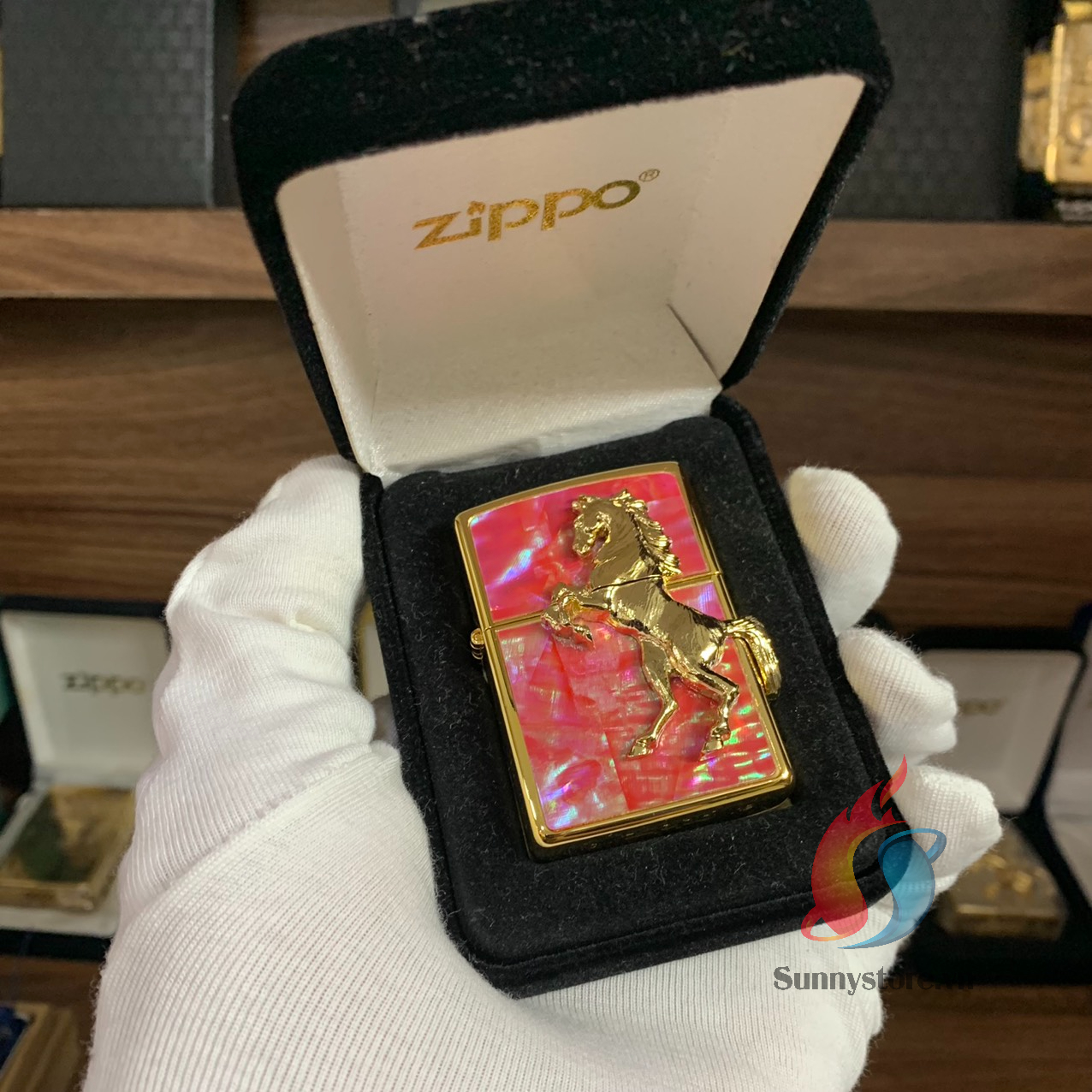 Thông tin sản phẩm: Zippo khảm trai ngựa mạ vàng cao cấp