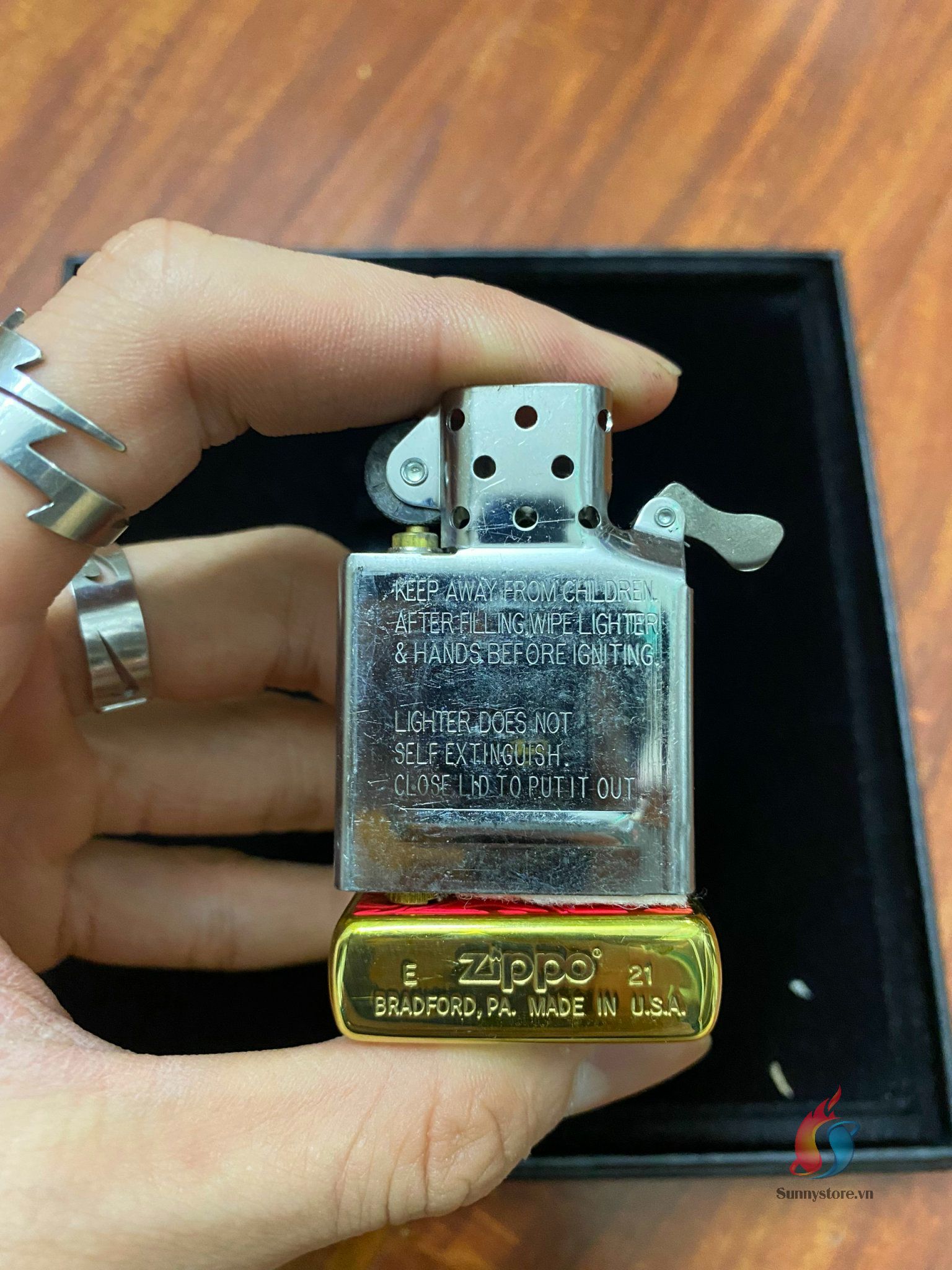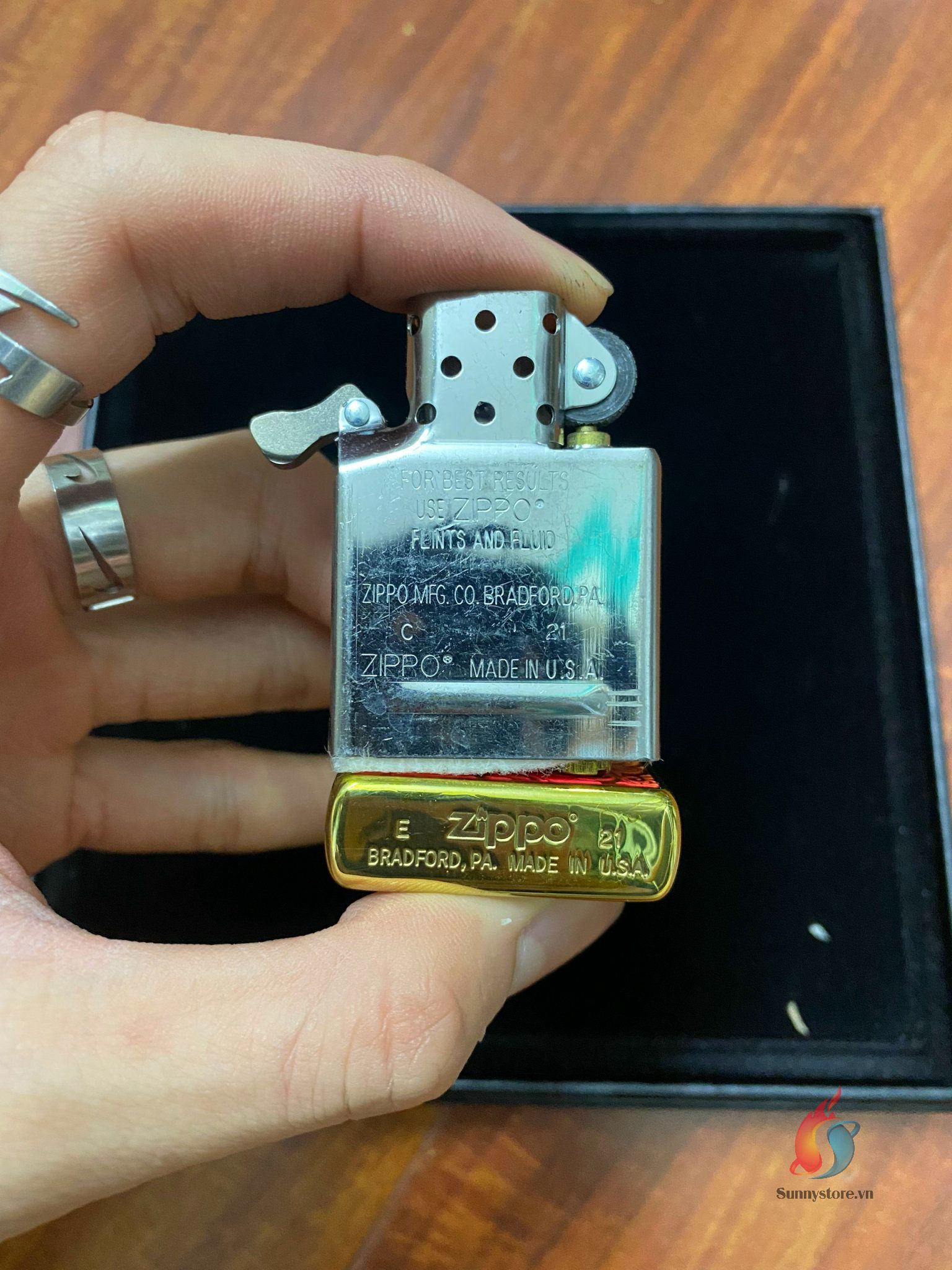 Zippo vỏ dày mạ vàng hoa văn chính hãng Mỹ, mới 100%, full box. Được các nghệ nhận thiết kế hoa văn dập nổi 5 mặt sang trọng, trang nhã. Ngoài ra, đây là dòng zippo giới hạn 1000 con, với số lượng sản xuất giới hạn, đây là chiếc zippo cực quý và giá trị, nếu không nhanh tay, khi hãng zippo đã bán xong 1000 chiếc, khách hàng có tiền cũng không thể sở hữu được em nó nữa.